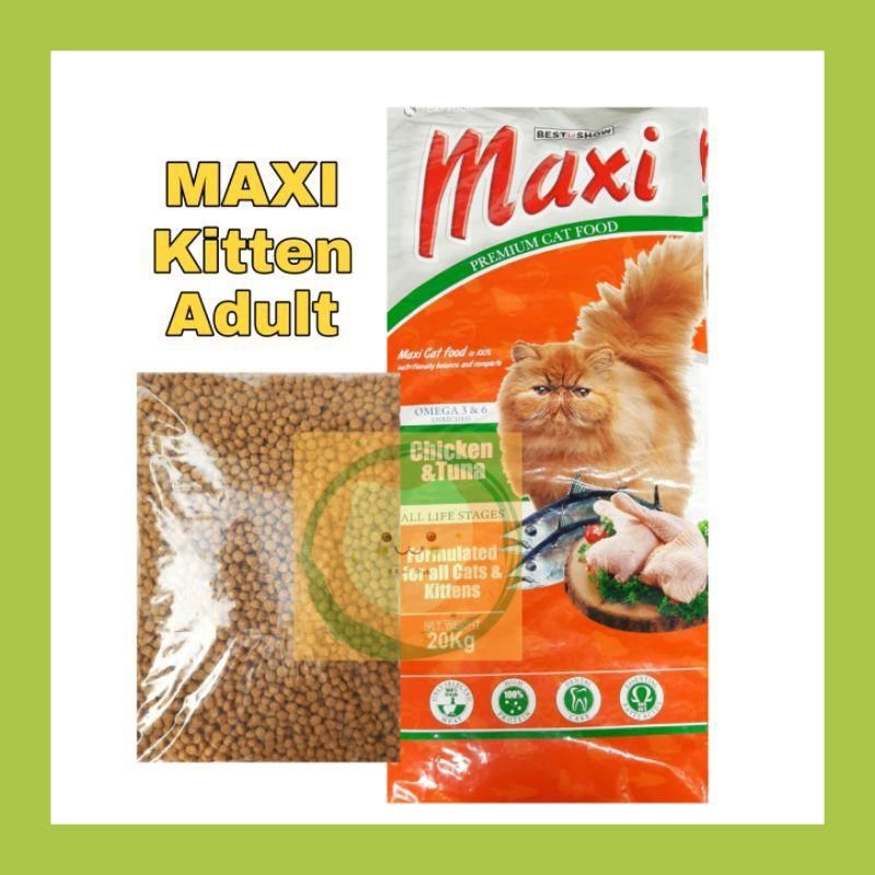 Maxi adalah merk makanan kering untuk kucing yang berbentuk biskuit. Maxi memiliki satu varian, yaitu chicken tuna. Maxi mengandung protein, vitamin, dan kandungan asam amino L-lysine, yang membantu membuat kucing lebih sehat, lebih gendut, dan terjaga daya tahan tubuhnya.