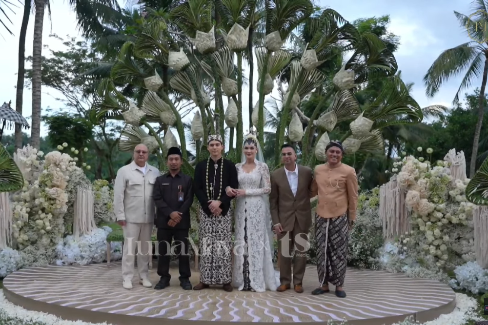 Dekorasi akad nikah Luna Maya dan Maxime Bouttier sukses mencuri perhatian berkat penggunaan anyaman janur sebagai elemen utama.