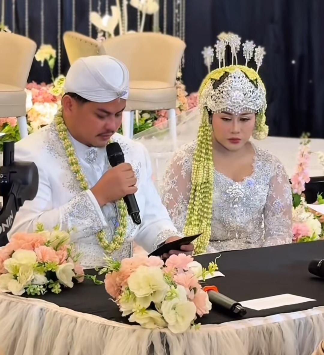 Suasana akad pun tampak seolah digelar di tengah taman yang asri, dipenuhi rangkaian bunga berwarna cerah yang menyegarkan mata.