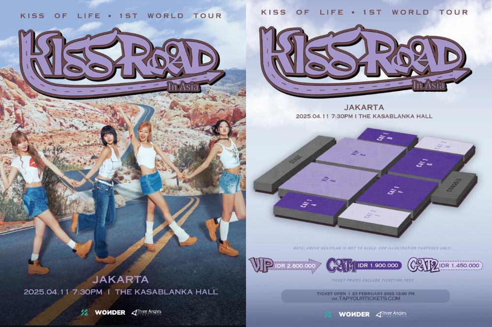 Dalam rangka tur dunia pertama, KISS OF LIFE (KIOF) juga berkunjung ke Jakarta dengan konser bertajuk ‘KISS ROAD’. KIOF mengadakan konser perdana mereka di The Kasablanka Hall Jakarta pada 11 April 2025.