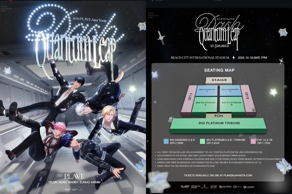 Grup virtual pertama asal Korea Selatan, PLAVE mengadakan tur Asia pertama mereka dan menjadikan Jakarta sebagai salah satu kota yang dikunjungi. Lewat tur bertajuk ‘DASH: Quantum Leap’, PLAVE mengadakan konser perdana mereka pada 18 Oktober 2025.