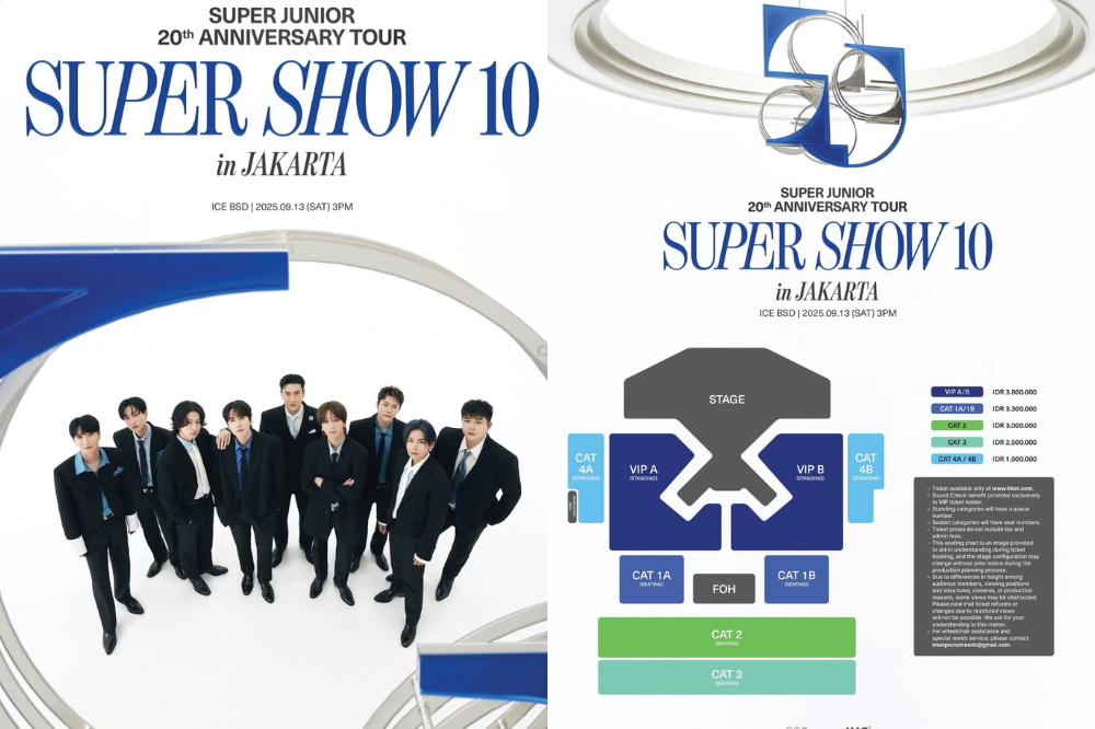 Super Junior juga kembali menggelar konser di Indonesia yang bertajuk ‘Super Show 10’. Konser yang diadakan pada 13 September 2025 ini juga semakin berkesan karena jadi konser spesial perayaan 20 tahun Super Junior.