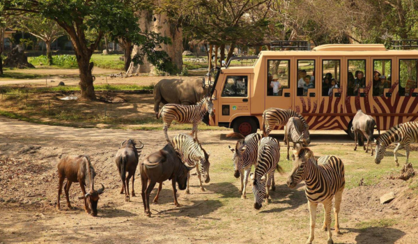 Destinasi yang satu ini akan memberikan pengalaman yang menyenangkan sekaligus edukatif. Bali Safari Marine Park merupakan konservasi bagi lebih dari 120 spesies satwa liar dan dilindungi, termasuk komodo, orang utan, dan masih banyak lagi. Di sini, kamu bisa berinteraksi lebih dekat dengan satwa liar melalui tur jelajah safari, berbagai pertunjukan atraksi, hingga kesempatan memberi makan hewan. Selain itu, safari yang terletak di wilayah Gianyar ini juga memiliki area waterpark dan taman hiburan dengan berbagai wahana menarik. Setelah eksplorasi sehari penuh, kamu dan keluarga bisa melepas lelah di hotel Mara River Safari Lodge yang berlokasi pada area yang sama.