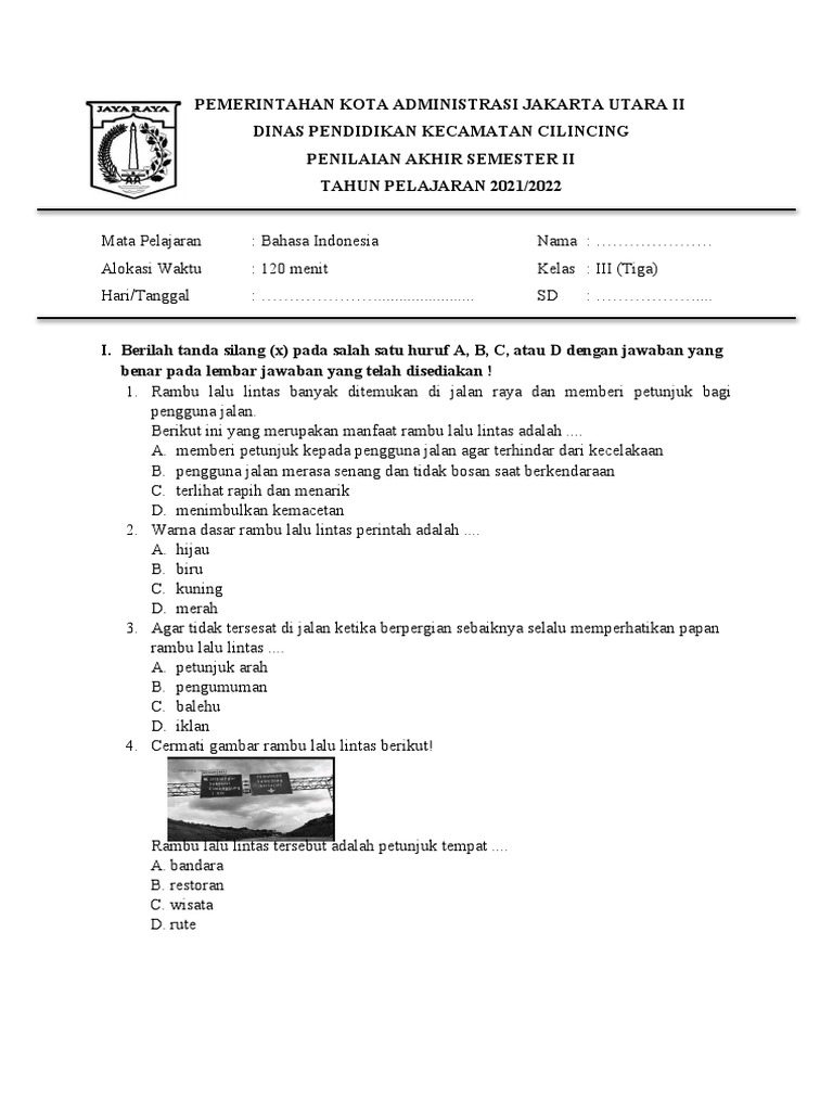 Berikut ini adalah contoh soal dan kunci jawaban Penilaian Akhir Semester (PAS) atau Sumatif Akhir Semester (SAS) untuk siswa Kelas 3 SD/MI. Soal-soal ini dirancang untuk membantu siswa mempersiapkan diri menghadapi ujian dan meningkatkan pemahaman mereka terhadap materi pelajaran Bahasa Indonesia.