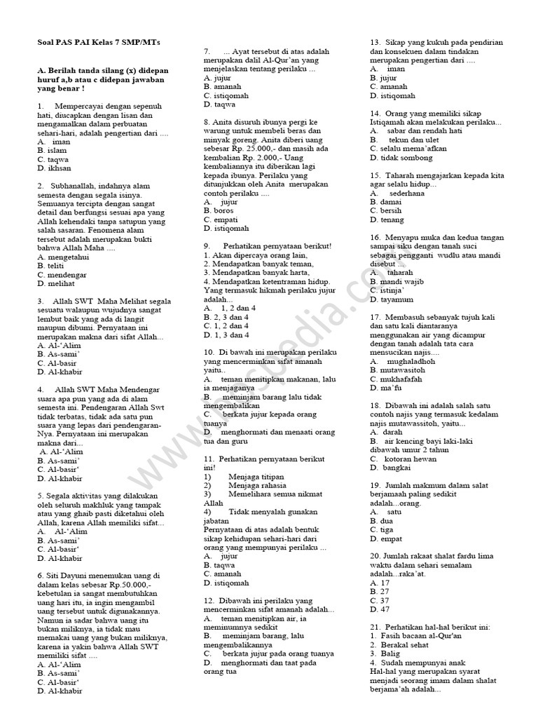 ilah kumpulan soal PAS Pendidikan Agama Islam (PAI) Kelas 7 SMP Semester 2 tahun 2026.