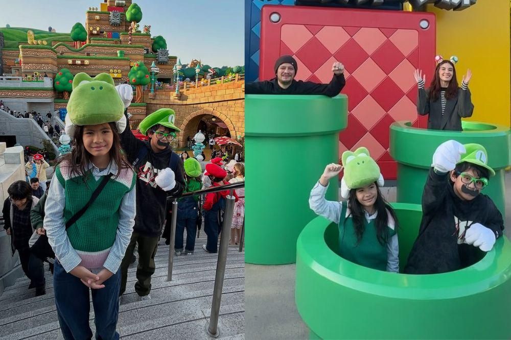 Gili dan Uma tampak begitu bersemangat saat mengunjungi Universal Studio di Jepang, lengkap dengan pakaian Nintendo kesukaan mereka.