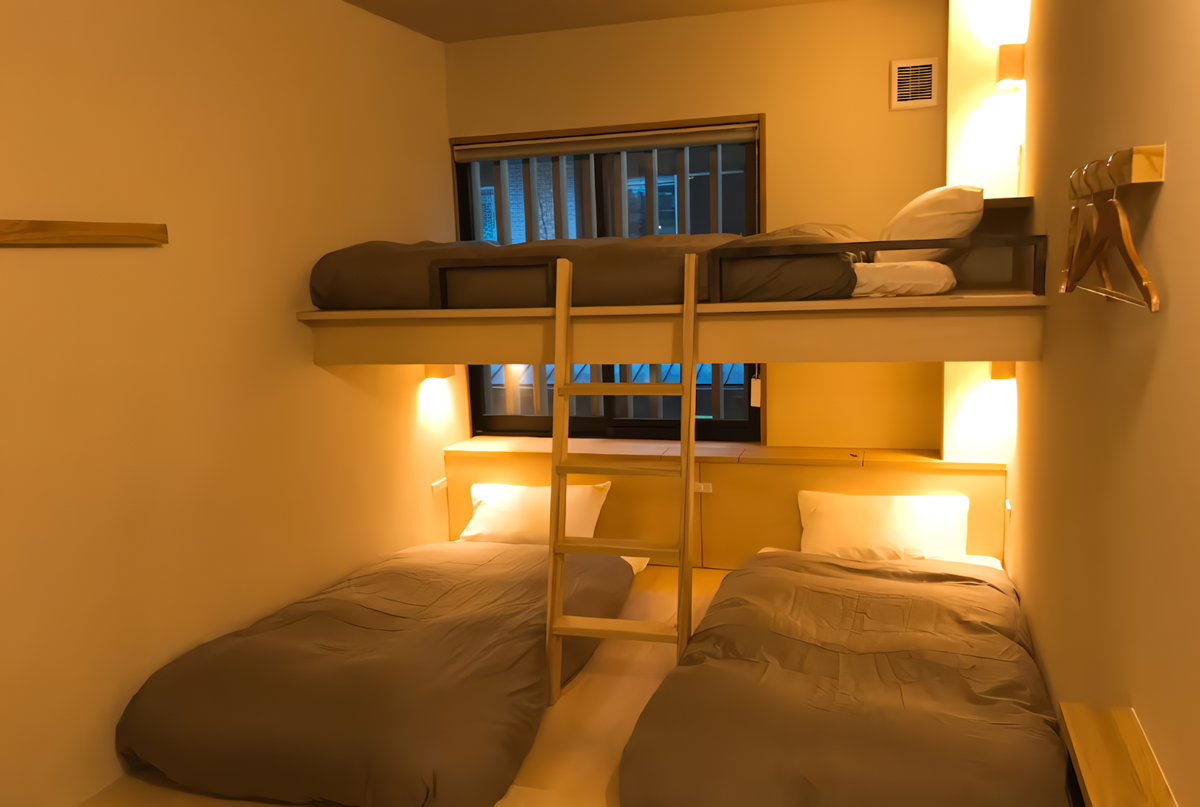 Penginapan di wilayah Nijo ini terasa nyaman karena terdapat minimarket, supermarket, dan halte bus yang berada tepat di dekat lokasinya. Kamar dengan ukuran 25 meter persegi ini memiliki 2single bed dan sofa beduntuk kapasitas maksimal 3 orang dengan biaya sekitar Rp992 ribu.