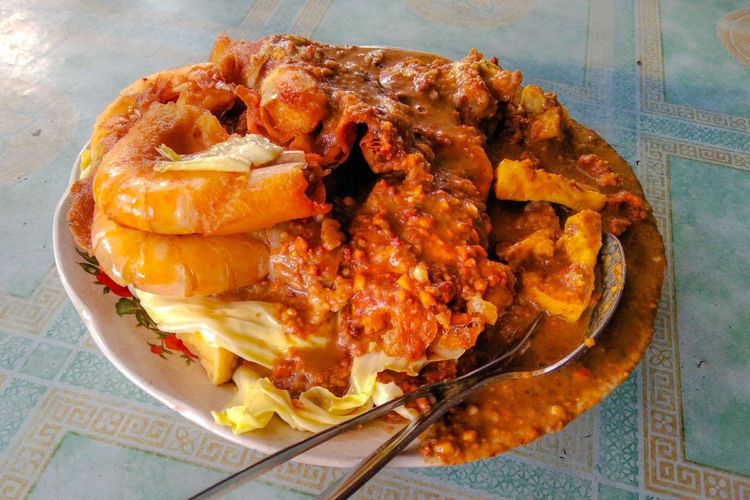 Warung yang sudah beroperasi sejak era 1950-an ini terkenal dengan siraman bumbu petis udang yang melimpah.