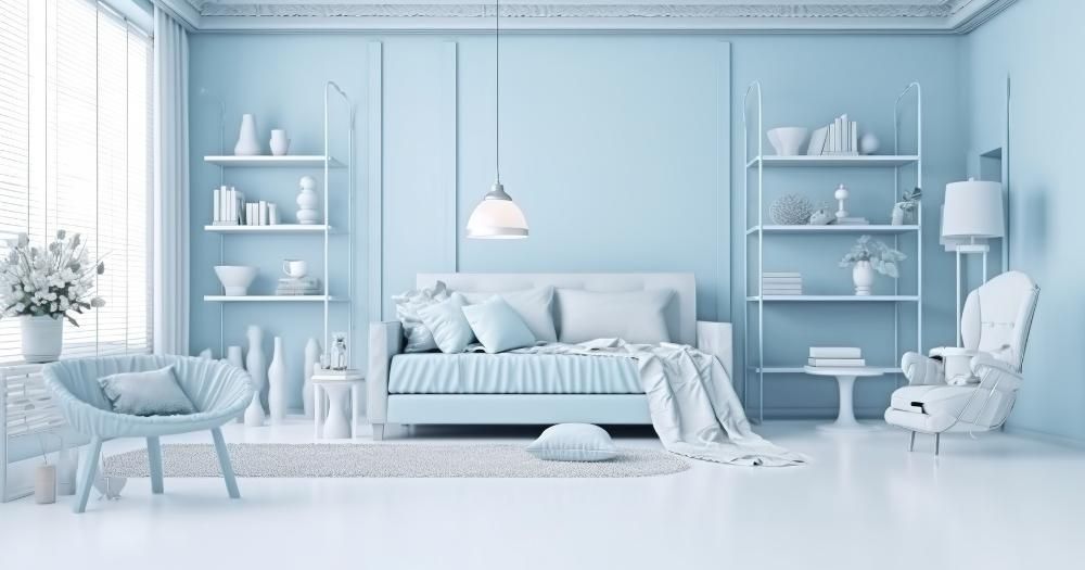 Warna cat biru pastel memberikan ketenangan yang sejuk. Warna ini membantu menciptakan suasana damai dan relaks di dalam rumah. Warna biru pastel sering dikaitkan dengan ketenangan laut atau langit cerah. Penggunaan biru pastel sebagai warna cat dapat mengurangi stres dan menciptakan perasaan tenang bagi penghuninya.