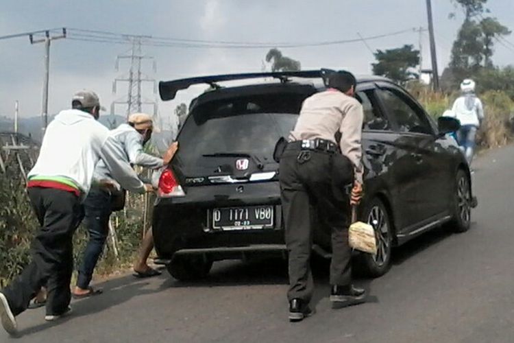 Mobilnya mogok karena selang radiator pecah. Akibatnya, mobil terhenti di bahu jalan. Sembari menunggu pertolongan, beberapa anggota polisi dari Satlantas Polres Kudus datang membantu. Mereka mendorong mobil agar tidak mengganggu lalu lintas.