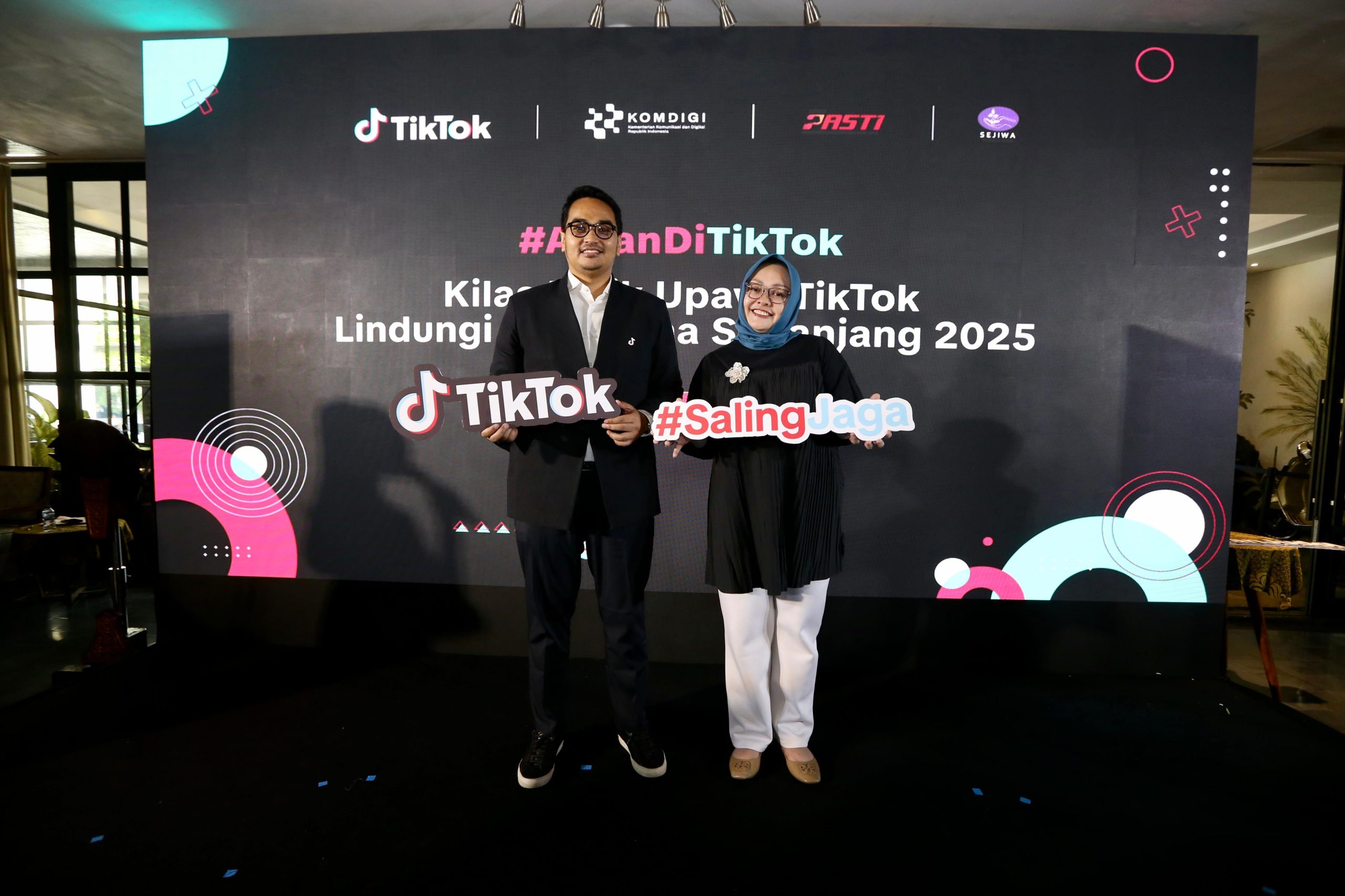 Tiga kampanye keamanan yang dilaksanakan TikTok sepanjang tahun 2025 adalah membangun ruang digital yang aman melalui edukasi remaja dan orang tua. Sejak 2024, TikTok telah menjalankan rangkaian inisiatif literasi digital bagi remaja dan orang tua, yang pada 2025 diperkuat melalui kampanye keamanan remaja Seru Berkreasi dan #SalingJaga bersama Yayasan SEJIWA, organisasi nirlaba yang konsisten menyuarakan perlindungan anak.