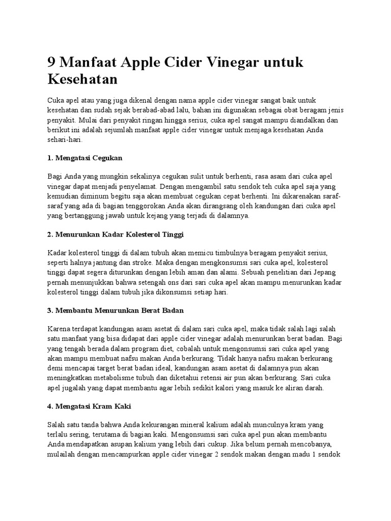 Konsumsi dalam kadar yang wajar dan penggunaan yang benar bisa memperkuat peran cuka apel sebagai bagian dari pola makan seimbang harian.