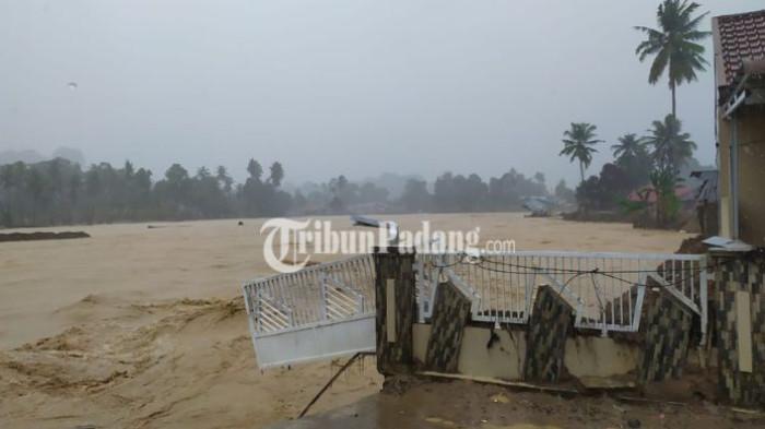 Tak hanya meningkat, arus dari aliran sungai juga sangat deras di sekitar Jembatan Gunung Nago.