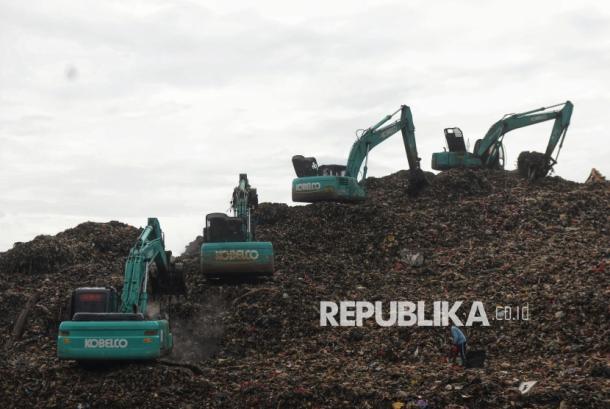 Sejumlah alat berat mengeruk sampah di Tempat Pembuangan Akhir (TPA) Cipeucang, Tangerang Selatan, Banten, Rabu (17/12/2025). Saat ini TPA Cipeucang ditutup sementara karena tengah menjalani proses perbaikan dan penataan konstruksi timbunan sampah agar lebih aman dan tertata, terutama untuk mencegah longsor serta memastikan keamanan jangka panjang. Pemerintah Kota Tangerang Selatan melalui Dinas Lingkungan Hidup (DLH) terus mempercepat penanganan di TPA Cipeucang agar aktivitas pembuangan sampah dapat kembali normal. Sedikitnya sekitar 15 unit alat berat atau ekskavator dikerahkan untuk mengeruk gunungan sampah dan membentuk terasering guna mencegah terjadinya longsor. Penutupan TPA Cipeucang sejak sepekan terakhir menimbulkan penumpukan sampah di berbagai ruas jalan di Kota Tangerang Selatan. – (/Prayogi)