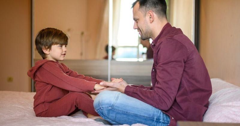 Pelukan juga bisa menjadi rutinitas harian yang akan membangun keamanan di diri si Kecil, “Ayo sini. Kita pelukan dulu. Papa di sini.”