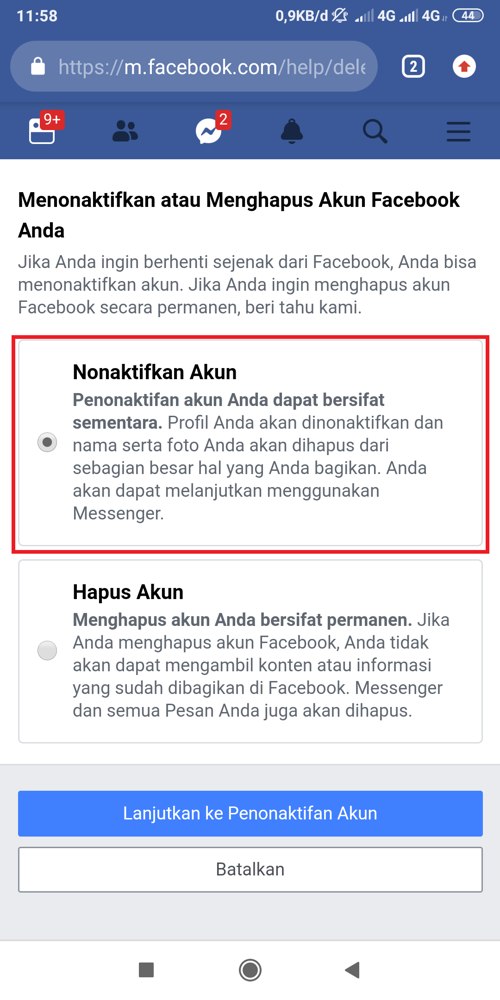 Selain itu, jika Anda hanya ingin menonaktifkan akun sementara, Anda bisa memilih opsi “Nonaktifkan Akun” pada langkah yang sama. Setelah nonaktif, profil Anda tidak akan terlihat oleh orang lain, tetapi beberapa informasi seperti pesan dan daftar teman mungkin masih terlihat. Untuk mengaktifkan kembali akun, cukup login seperti biasa.