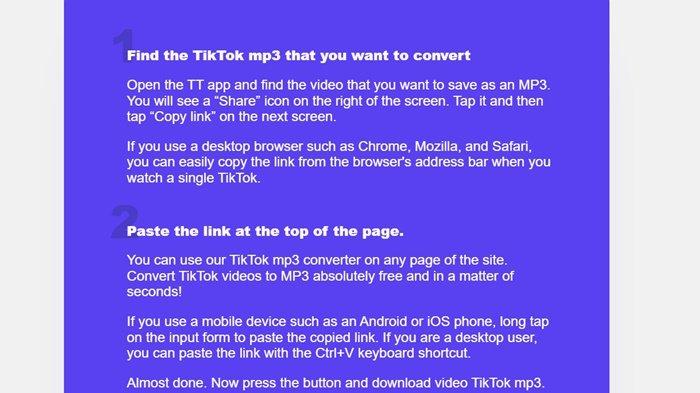Setelah memiliki tautan, buka situs web yang menyediakan layanan konversi video TikTok ke MP. Salah satu contoh situs yang bisa digunakan adalah SSSTikTok. Akses situs tersebut melalui browser di perangkat Anda. -