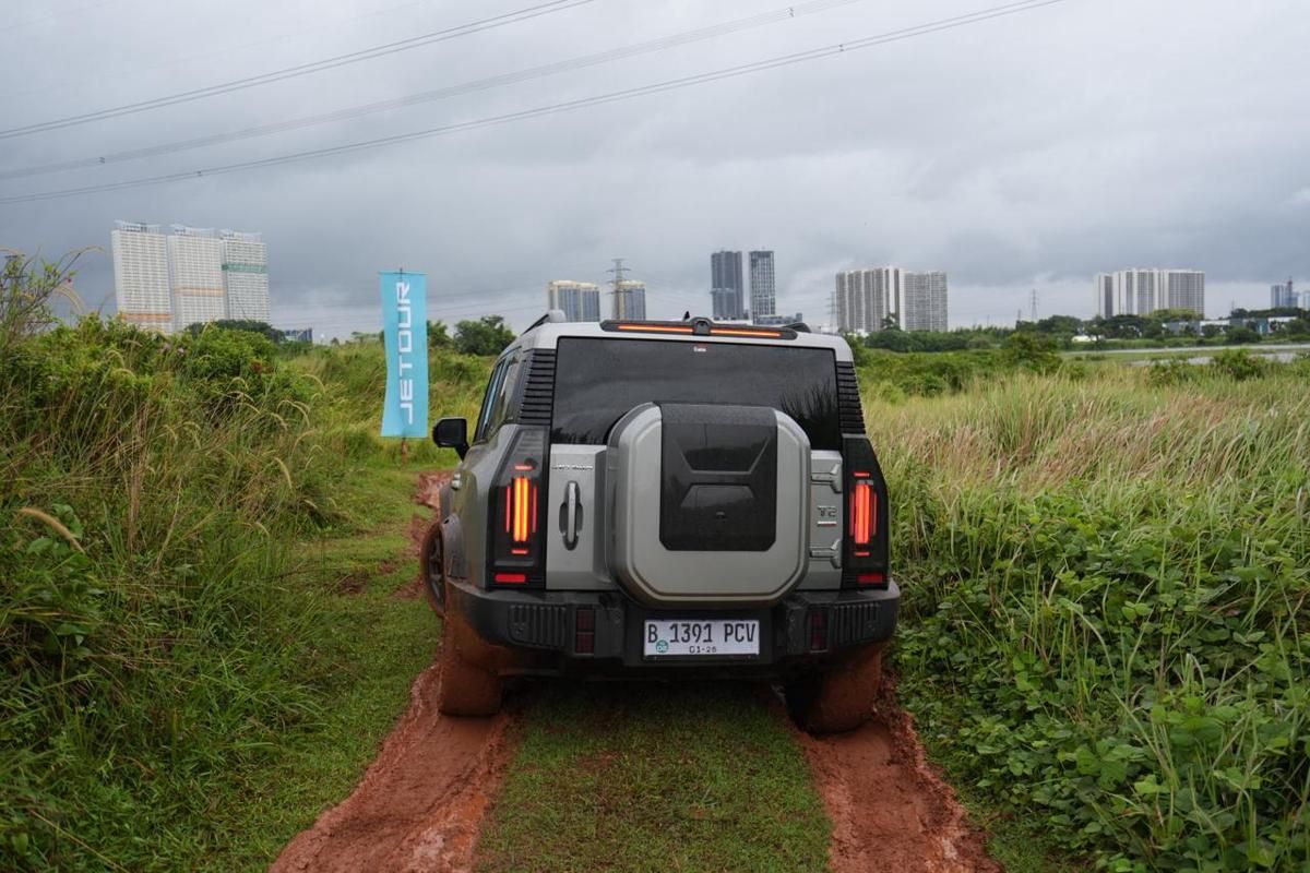 Untungnya, kondisi ground clearance yang tinggi membuat mobil tidak tersangkut di trek off-road, dan tenaga mesin Kunpeng Power 2.0 TGDI dengan tenaga 245 PS dan torsi 375 Nm, serta sistem X WD Intelligent 4WD membuat mobil ini terasa mantap untuk melewati berbagai rintangan di lintasan off-road.