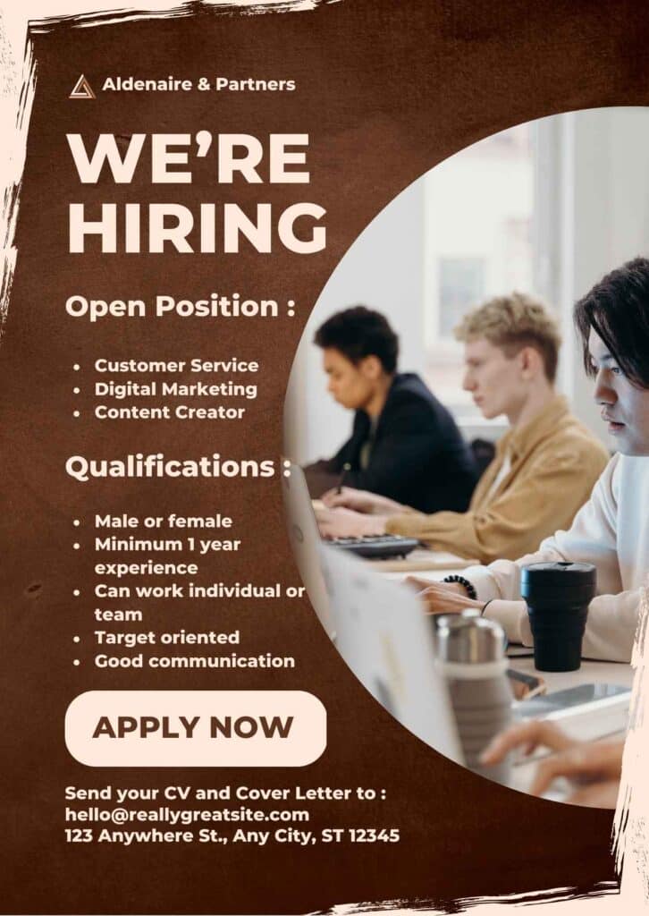 Selain itu, contoh gambar iklan lowongan pekerjaan dalam bahasa inggris juga harus memperhatikan aspek teknis seperti ukuran font, penempatan teks, dan keselarasan visual. Semua elemen ini harus bekerja sama untuk menciptakan tampilan yang profesional dan mudah dibaca. Jika diperlukan, kamu bisa menggunakan alat desain grafis seperti Canva atau Adobe Illustrator untuk membuat iklan yang sesuai.