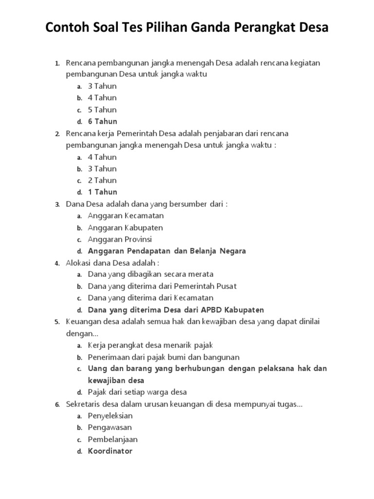 Inilah Contoh Soal Tes Perangkat Desa 2025