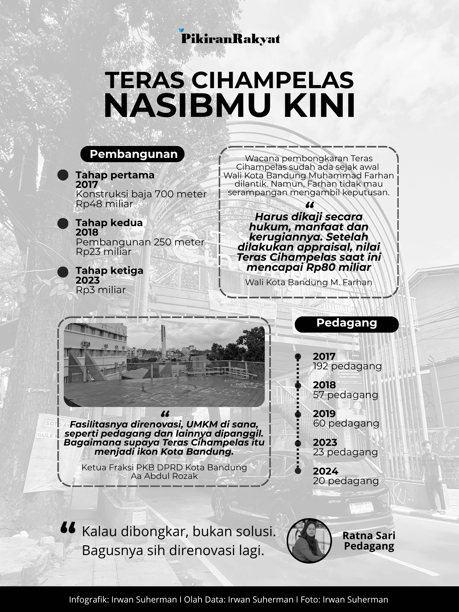 Saat ini Pemerintah Kota Bandung dikabarkan sedang meninjau hal tersebut. Farhan menyampaikan, terdapat beberapa pertimbangan utama dalam mempertimbangkan pembongkaran Teras Cihampelas. Di antaranya adalah aspek keamanan, sosial, estetika kota, serta lalu lintas.