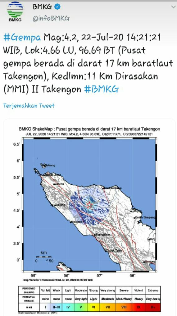 – Baru saja terjadi gempa bumi di Bener Meriah, Aceh.