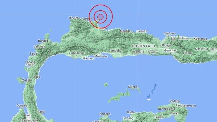 Koordinat titik gempa berada di 0.04 Lintang Utara (LU), dan 124.44 Bujur Timur (BT).