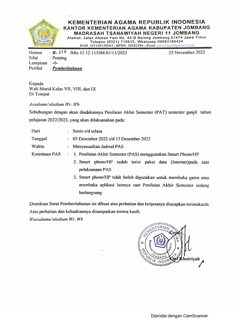 Demikian Surat Edaran ini disampaikan. Diharapkan Saudara dapat mengambil langkah yang diperlukan agar ayah hadir dalam pengambilan rapor sesuai ketentuan yang berlaku.