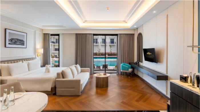 agi tamu yang memilih tipe Executive room ke atas, pengalaman menginap akan semakin istimewa dengan adanya balkon pribadi yang menghadap ke area kolam renang, kitchen, living room, mini bar gratis, hingga bathroom yang dilengkapi dengan bathtub dan shower terpisah. “Perjalanan dari masa soft opening satu tahun yang lalu hingga hari ini merupakan pencapaian yang luar biasa bagi seluruh tim.
