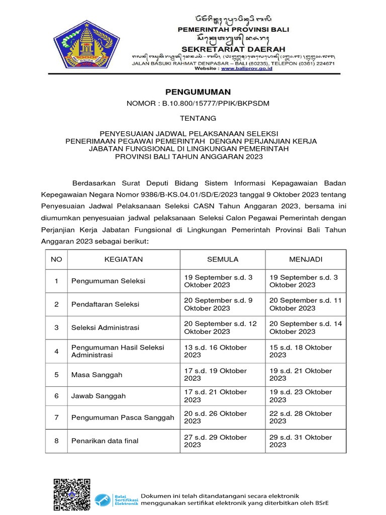 Jadwal ini bersifat tentatif dan dapat berubah sesuai dengan kebijakan pemerintah pusat. Oleh karena itu, para pelamar diimbau untuk terus memantau situs resmi BKN dan KemenPAN-RB.
