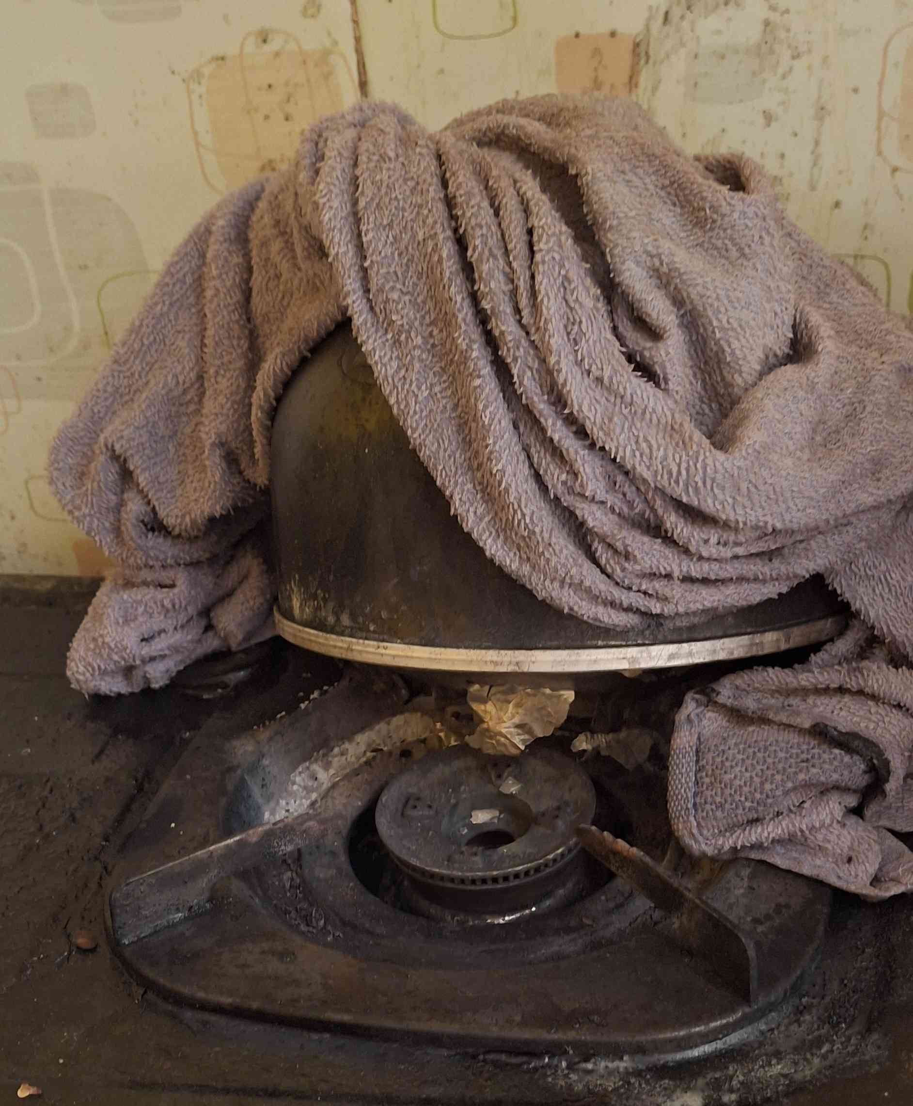 Segera kututup dengan kain basah dan api perlahan mati. Kompor juga masih aman, hanya teko yang hitam dan rusak parah.