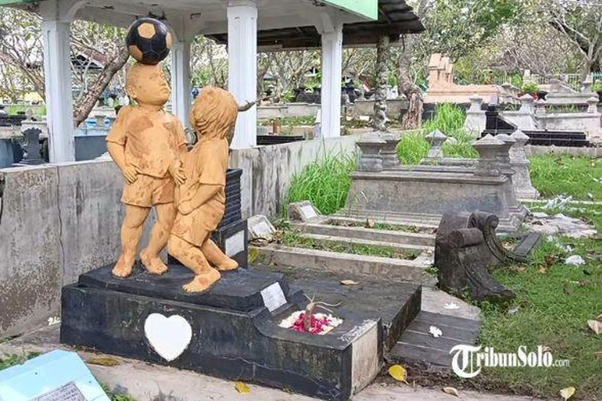 Sebuah nisan yang menarik perhatian banyak orang telah menjadi viral di TPU Bonoloyo, Solo. Nisan tersebut memiliki bentuk patung dua bocah yang sedang bermain bola. Di balik keunikan ini, terdapat cerita yang sangat mengharukan.