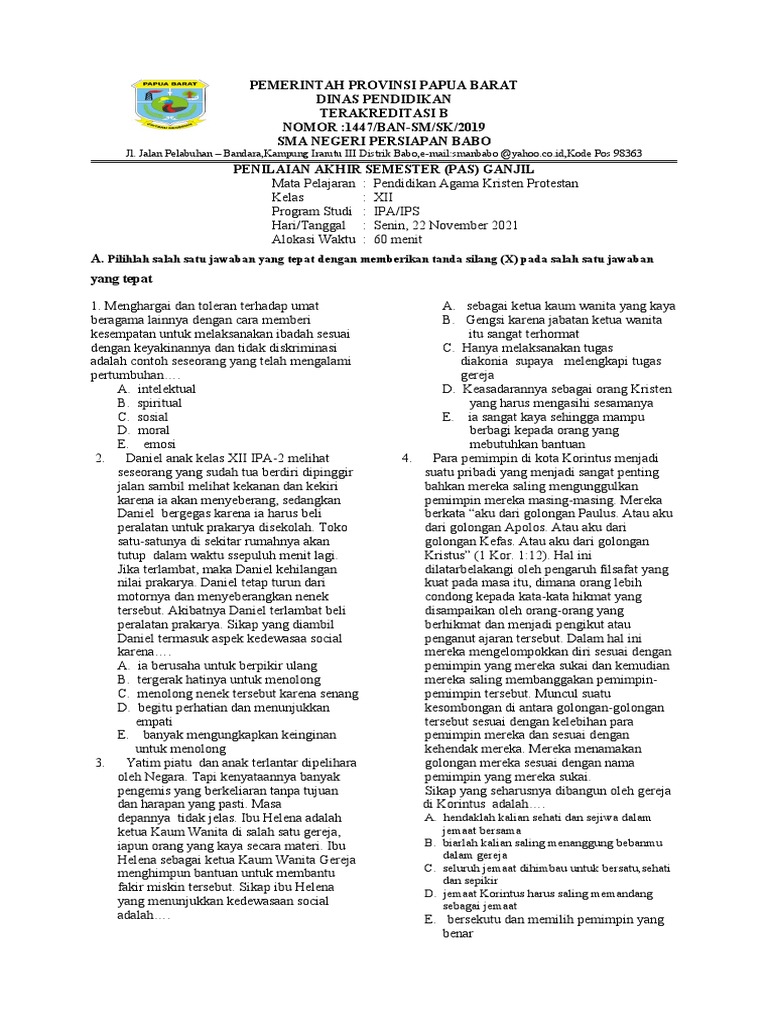 Dengan memahami kisi-kisi USBN Agama Kristen 2018 dan berlatih soal-soal yang relevan, siswa akan lebih siap menghadapi ujian dan meningkatkan peluang kelulusan.