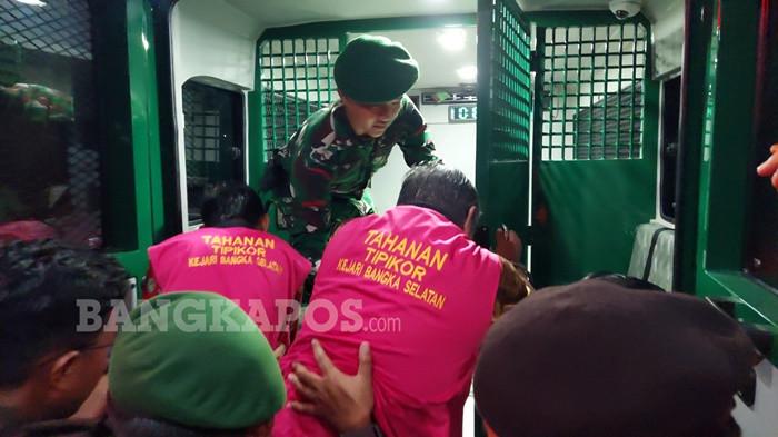 Pantauan pada hari itu, dua tersangka tampak digiring keluar dari Gedung Kejaksaan Negeri Bangka Selatan dengan pengawalan ketat petugas. Mengenakan rompi merah muda khusus tahanan tindak pidana korupsi, keduanya berjalan menunduk saat menuju mobil tahanan yang telah disiapkan di halaman kantor kejaksaan. Tersangka Justiar Noer berjalan lebih dulu, diapit dua petugas sambil memegang map berisi berkas pribadi. Sementara itu, tersangka Dodi Kusumah menyusul beberapa langkah di belakangnya, tangan terborgol dan terus dikawal agar proses pengamanan tetap tertib.