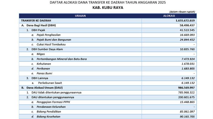Rincian Realisasi TKD Kubu Raya 2025