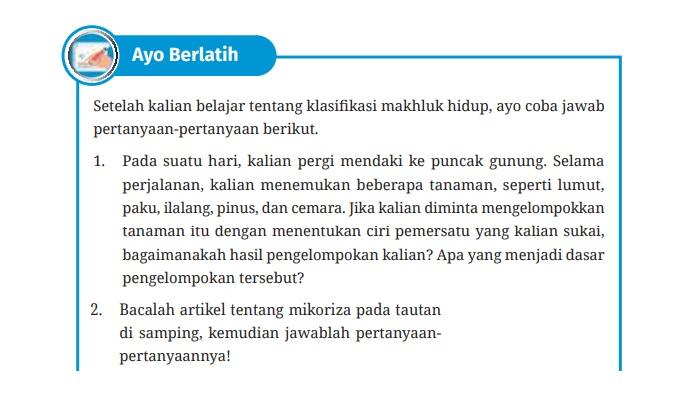 Kali ini kita akan membahas soal pada Bab 6 yang berjudul Keanekaragaman Makhluk Hidup, Interaksi, dan Peranannya di Alam pada kegiatan siswa Ayo Berlatih tentang pengelompokan tanaman di puncak gunung.