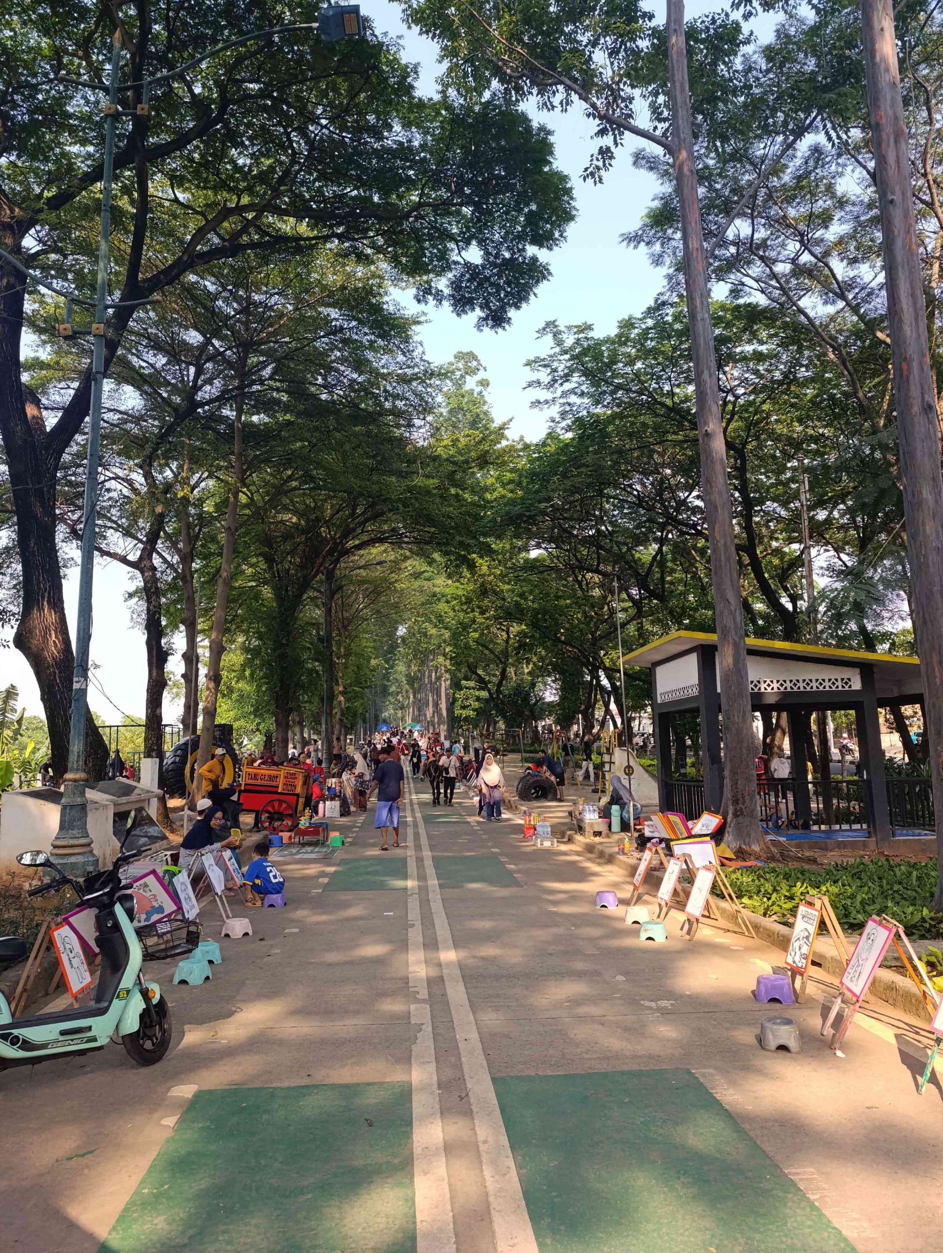 Memahami keriuhan tersebut, saat area taman dipadati warga yang berekreasi, para pencinta olahraga biasanya bergeser ke area yang tidak terlalu banyak dipenuhi pedagang agar tetap bisa berlari atau bersepeda dengan nyaman.