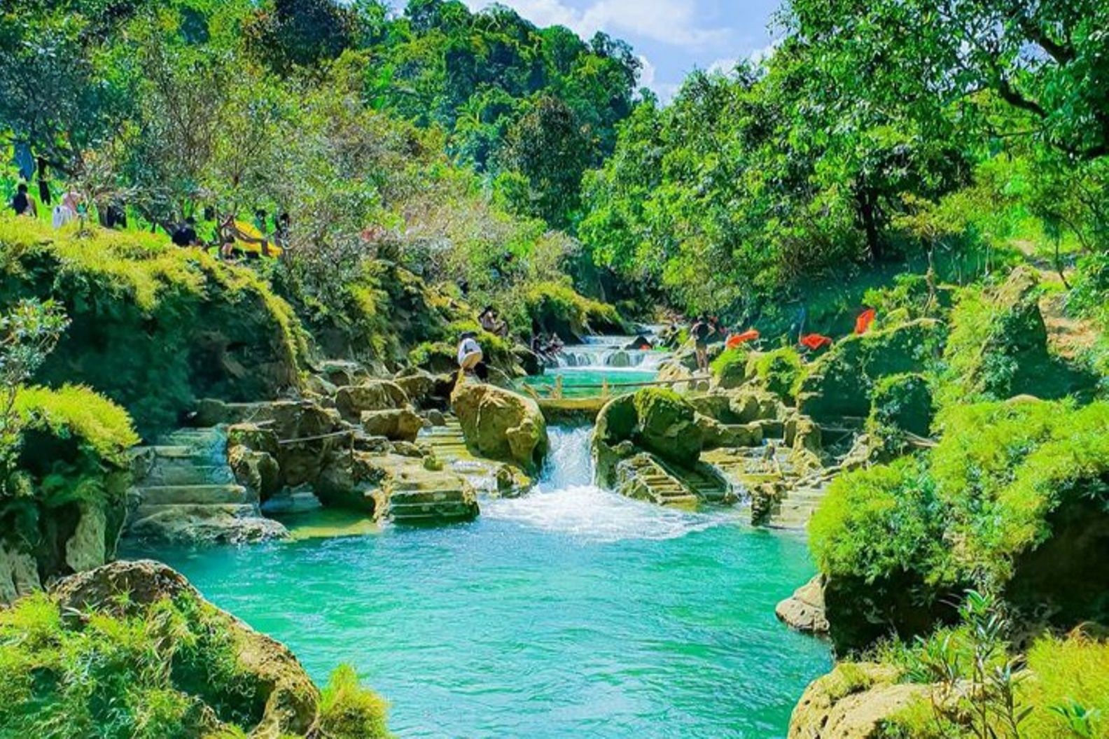 Yang menarik dari curug ini terdapat banyak kolam dengan kedalaman beragam, tetapi tidak terlalu dalam. Air di kolam-kolam itu pun jernih.