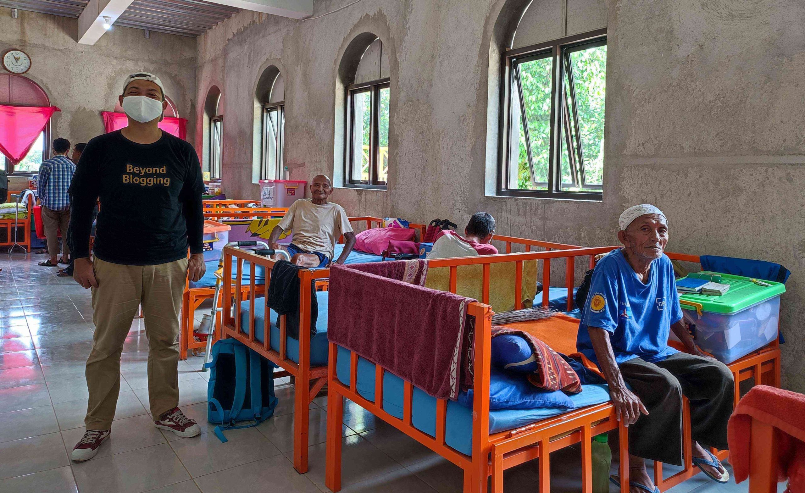 Mereka mengurusi puluhan lansia, sebagian besar fisiknya tidak berdaya. Ada lansia hanya bisa berbaring di ranjang, saat yang lain duduk di teras. Ada yang sudah pikun, kalau diajak ngobrol tidak nyambung.