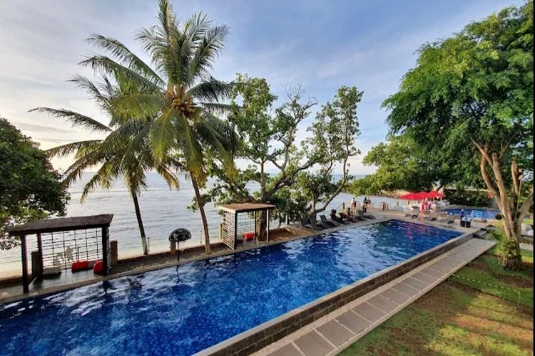 Hotel ini menyediakan area taman, kolam renang, dan akses pantai yang mudah. Anak-anak bisa bermain air dengan aman, sementara orang tua bisa bersantai di area gazebo. Pemandangan lautnya juga sangat indah, terutama pada saat matahari terbenam.