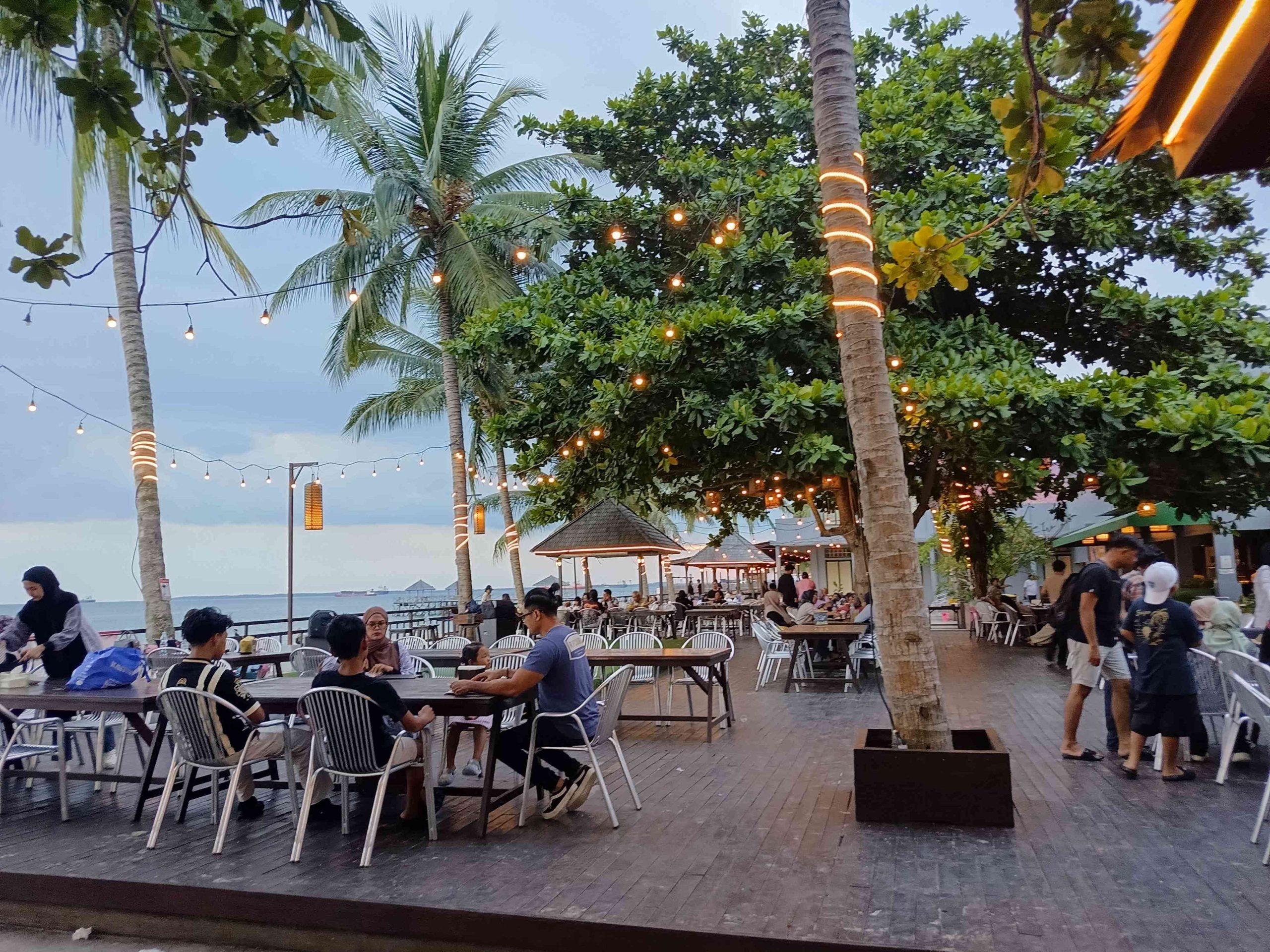 Jadi, kami memilih untuk bersantai dulu di Kampoeng Pasir, yang merupakan resto dengan pemandangan Pantai Kemala. Tempatnya juga bersih dan nyaman dengan banyak tempat duduk. Ada area outdoor dan juga semi indoor yang bisa pengunjung pilih.