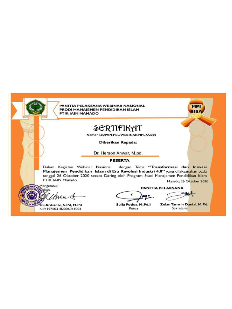 - Buku karya Dekan FTIK IAIN Manado Dr. Arhanuddin, M.Pd.I