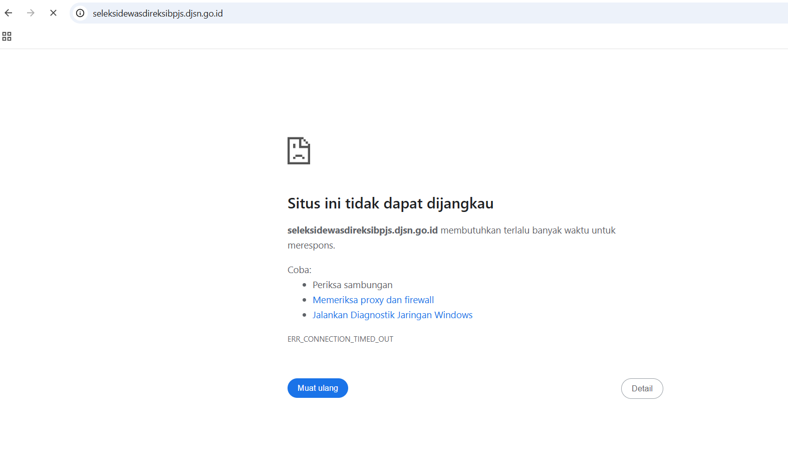 Sementara itu, sejak Senin hingga hari iniBisnistelah mencoba mengakses situs seleksidewasdireksibpjs.djsn.go.id sebagai saluran sah. Namun, hingga pukul 14:40 WIB situs tersebut masih tidak dapat diakses. Merespons hal ini, Nunung mengatakan dirinya tidak mengetahui tentang kendala yang terjadi.website tersebut.