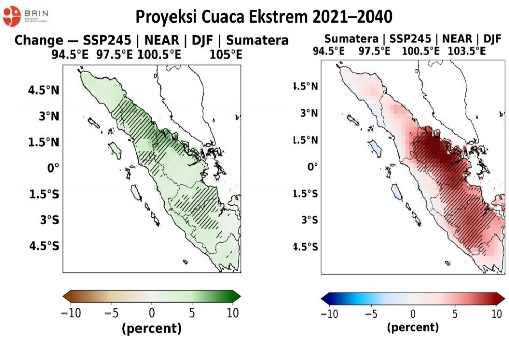 , JAKARTA — Pemodelan iklim yang dilakukan tim peneliti Badan Riset dan Inovasi Nasional (BRIN) menunjukkan Pulau Sumatra menjadi wilayah paling rentan terhadap peningkatan cuaca ekstrem, khususnya hujan dan angin ekstrem, dalam periode 2021–2040.