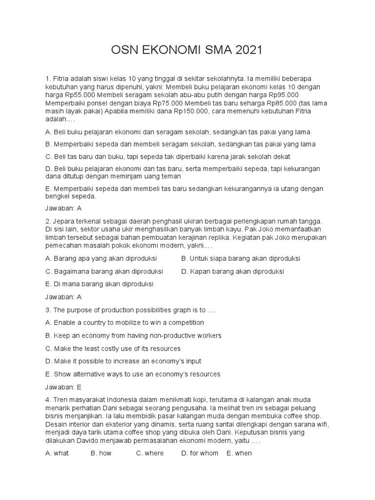 Contoh Soal OSN Ekonomi