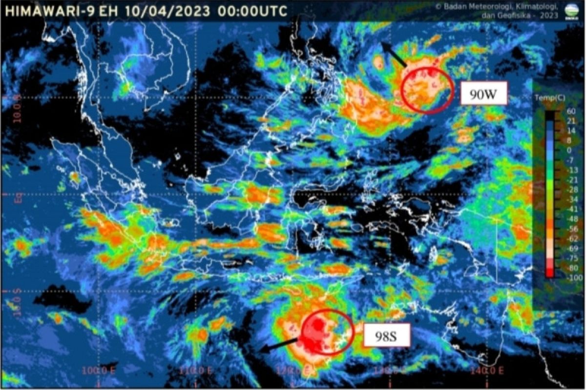 BMKG menyampaikan, dua pusat badai tropis yaitu 91S dan 93S telah memengaruhi kondisi cuaca di Indonesia secara tidak langsung dalam beberapa hari terakhir.