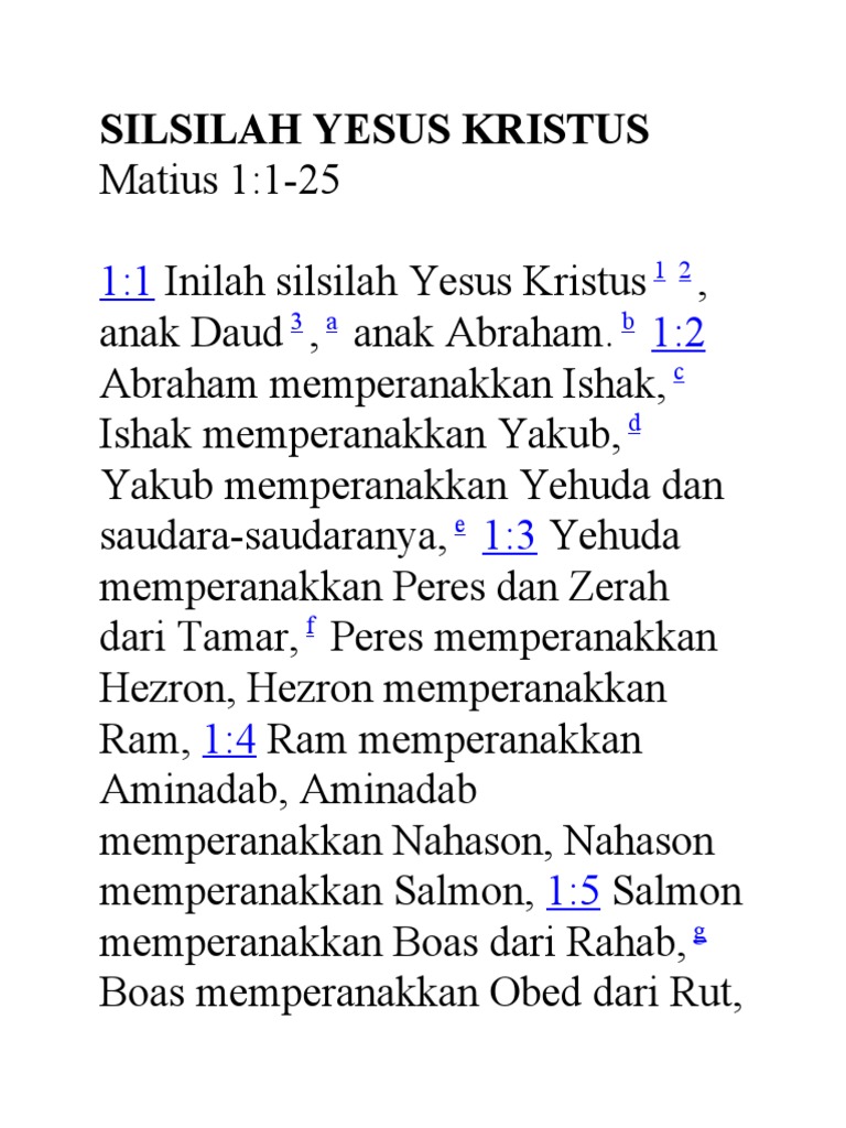 Dalam bacaan Injil, yaitu Matius 1:1-17, kita menemukan silsilah Yesus Kristus. Injil ini dimulai dengan menyebutkan silsilah Yesus, mulai dari Abraham hingga Daud, lalu dari Daud hingga pembuangan ke Babel, dan akhirnya hingga Yesus. Melalui silsilah ini, penulis Injil ingin menunjukkan bahwa Yesus adalah penggenapan janji-janji Allah yang telah disampaikan melalui sejarah bangsa Israel.