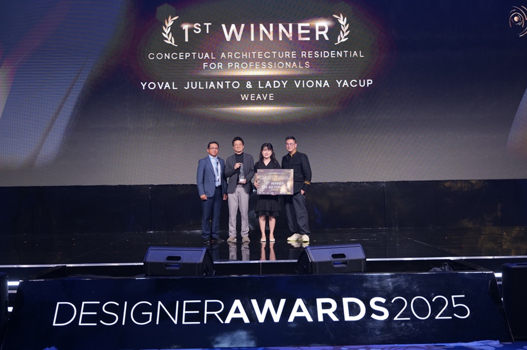 Dalam kategori Conceptual Architecture Residential for Professional, karya yang berjudul Weave karya Yoval Julianto dan Lady Viona Yacup dari Dreamlabs Architecture berhasil meraih juara pertama. Sebelumnya, pasangan ini telah dinobatkan sebagai Daniel’s Choice dalam kategori conceptual interior design residential for professional di tahun 2024. Kali ini, mereka kembali menorehkan prestasi dengan karya yang unik dan kreatif.