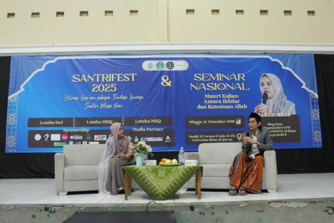 KABAR WONOSOBO —Komunitas Syawir.id Universitas Sains Al-Qur’an (UNSIQ) Wonosobo berhasil menyelenggarakan SANTRIFEST 2025 dan Seminar Nasional sebagai puncak perayaan hari lahir (harlah) yang ke-1. Acara berlangsung pada hari Minggu, 14 Desember 2025, di Aula Al-A’la UNSIQ Wonosobo.