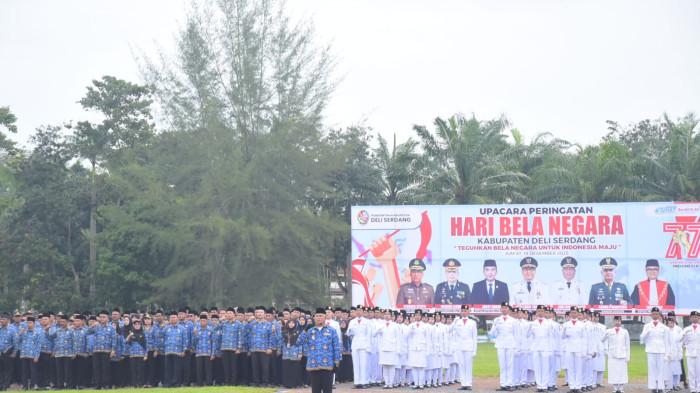 “Peristiwa penting ini menjadi bukti nyata bahwa semangat bela negara mampu menjaga kelangsungan Republik Indonesia di tengah ancaman Agresi Militer II,” kata Wakil Bupati (Wabup) Deli Serdang, Lom Lom Suwondo SS saat membacakan pidato Presiden Republik Indonesia, H Prabowo Subianto, dalam Peringatan Hari Bela Negara (HBN) ke-77 Tahun 2025 Tingkat Kabupaten Deli Serdang di Alun-Alun Pemerintah Kabupaten (Pemkab) Deli Serdang, Jumat (19/12/2025).